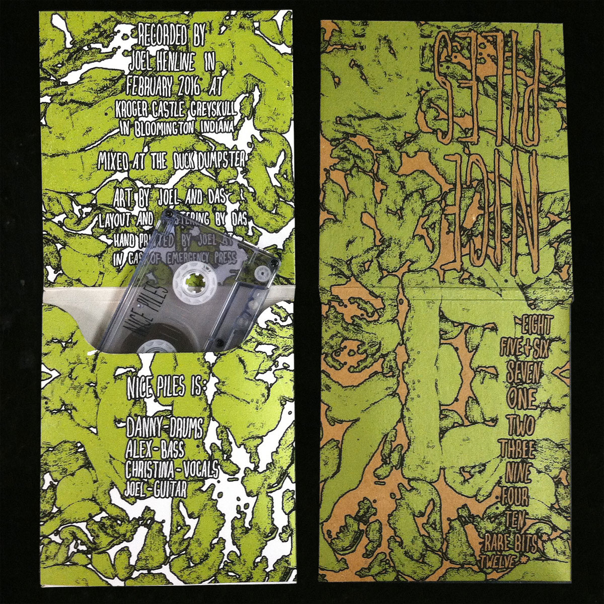 Nice Piles was a Bloomington, Indiana band that existed up until literally last night, when they played their final show. As part of the concert, they also released a demo cassette in a limited edition of only 30 units.