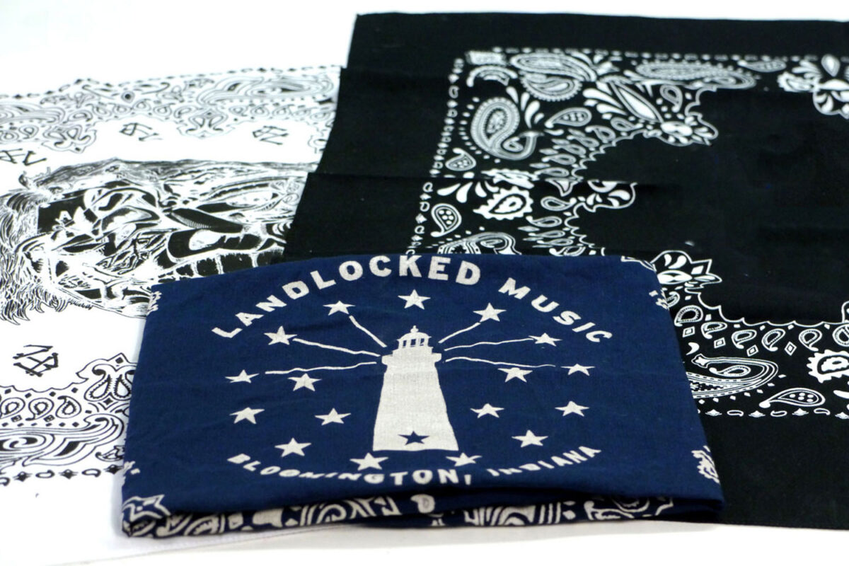 We use soft cotton bandannas and discharge them for the absolute ultimate in softness and color durability.